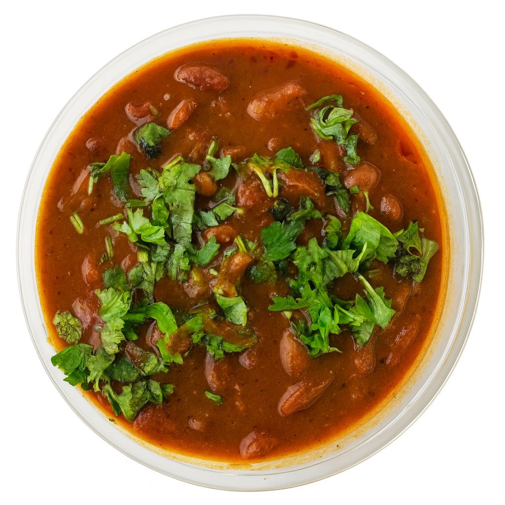 Creamy heritage rajma slow-cooked with Delhi spices, served with fluffy basmati rice and tangy pickle.